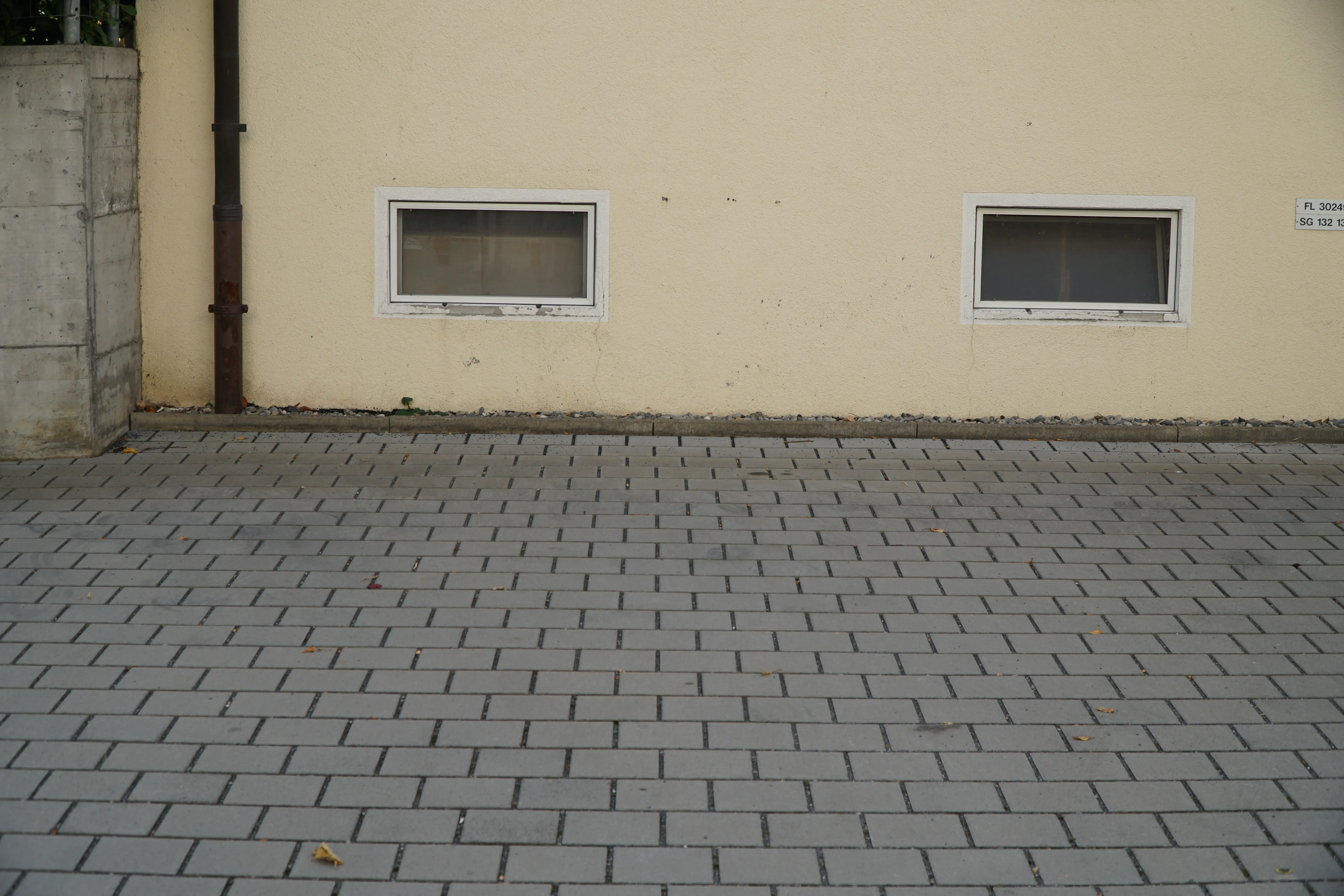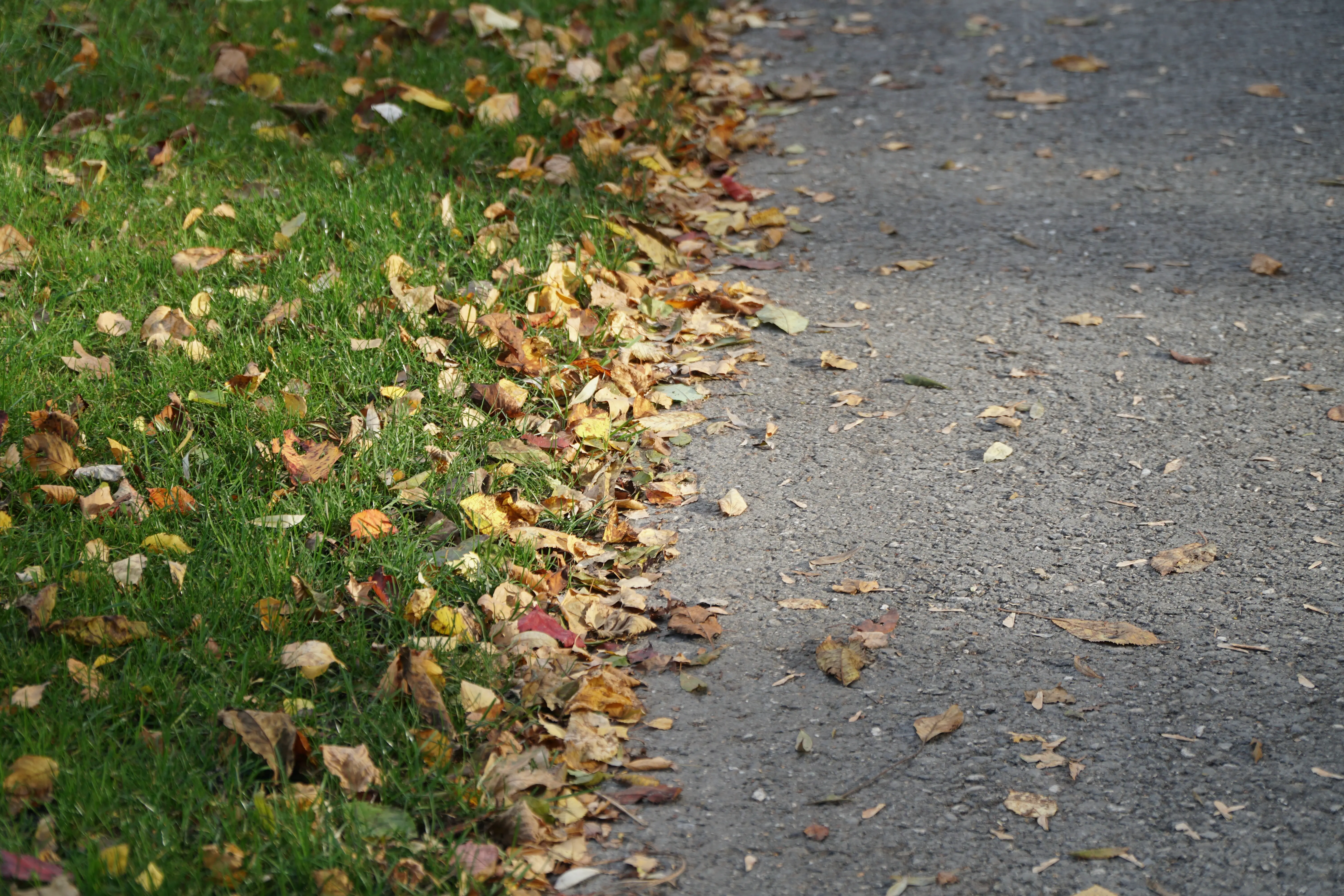 cammino lungo un vecchio muro. foglie verdi si allungano verso il